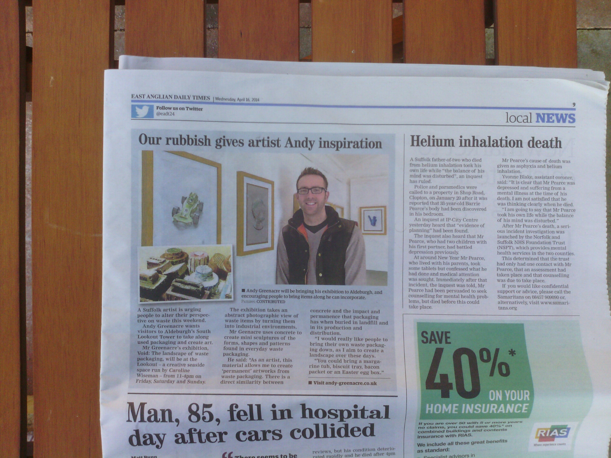 East ‘Andyian’ Daily Times April 16, 2014April 20, 2014 AndyG Very pleased to see coverage in the East Anglian Daily Times and the Ipswich Evening Star today for my upcoming exhibition :) Share this: Share on Facebook (Opens in new window) Facebook Share on X (Opens in new window) X Share on Tumblr (Opens in new window) Tumblr Share on LinkedIn (Opens in new window) LinkedIn Share on Pinterest (Opens in new window) Pinterest Share on WhatsApp (Opens in new window) WhatsApp Email a link to a friend (Opens in new window) Email Like Loading... Related