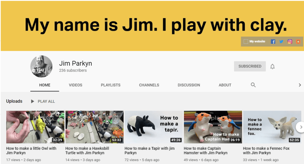 Each day Jim runs a 45-60 minute session where you can learn how to make a clay model of everything from a cabbage to a camel. It really is very fun and an ideal way to get you and your family creative in lockdown. Haven’t got any clay? don’t worry, you can use salt-dough, icing, fimo or even Playdoh. If you aren’t free at 3pm, head over to Jim’s Youtube channel and you can make along with all his previous sessions.