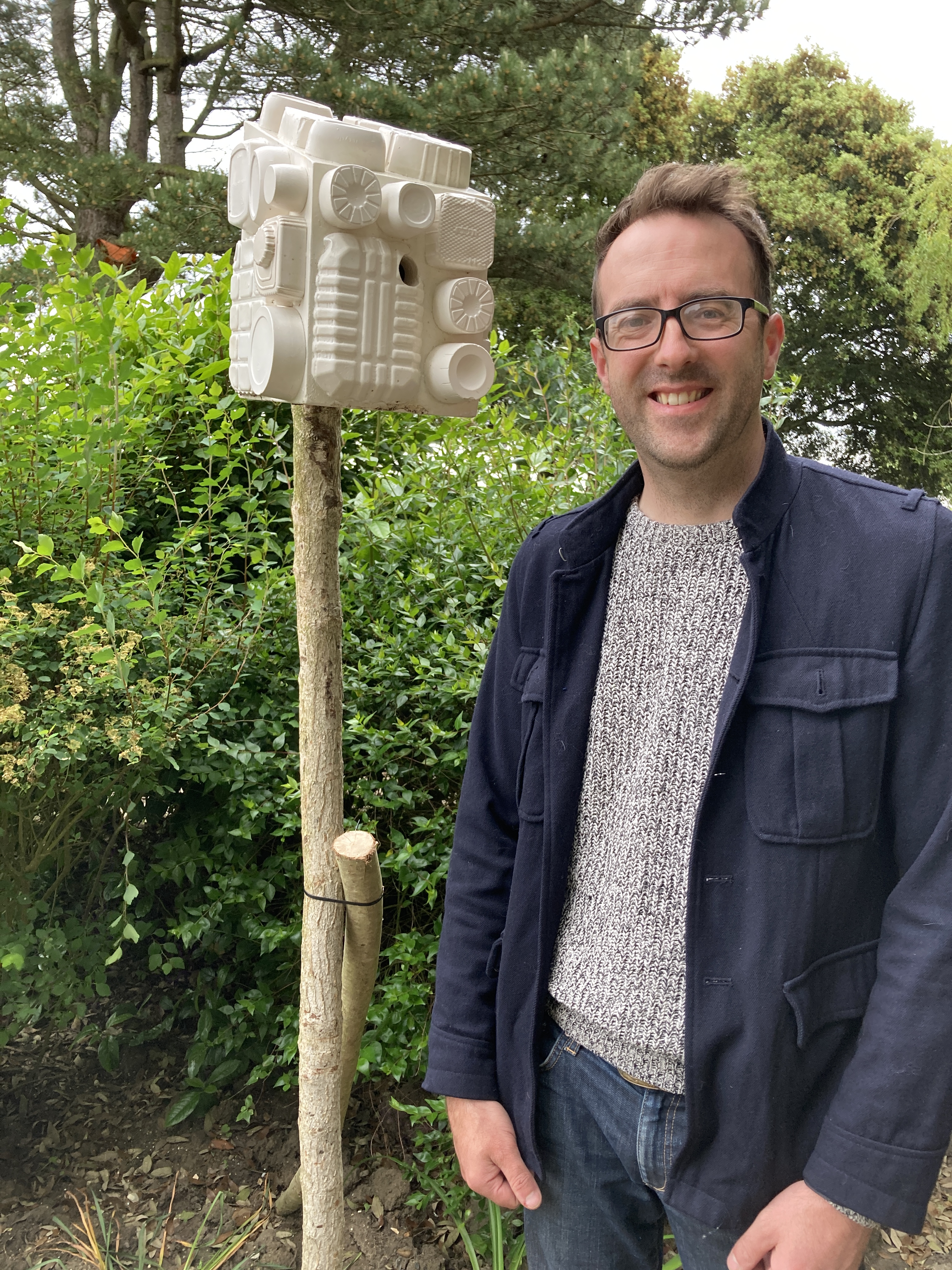 My art bird box explores and confronts the impact of humans on the environment. Plastic has been found to be in many nests of birds in the UK. I wanted to explore using the forms of plastic waste to create a nest box that birds could inhabit. Intervallum explores that space between man and nature, the uneasy balance and conflict that we need to address. You can see a short film of the sculpture here.