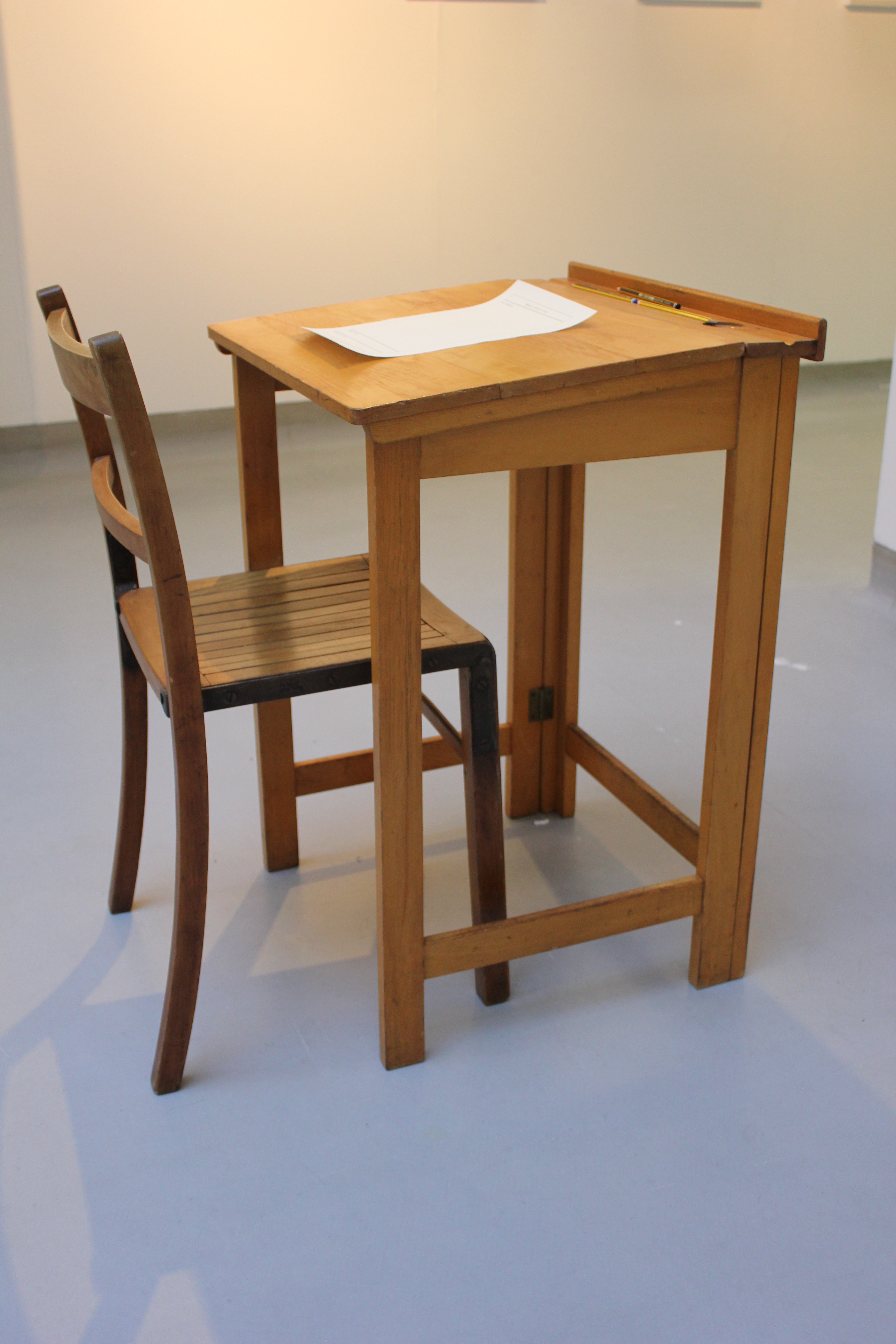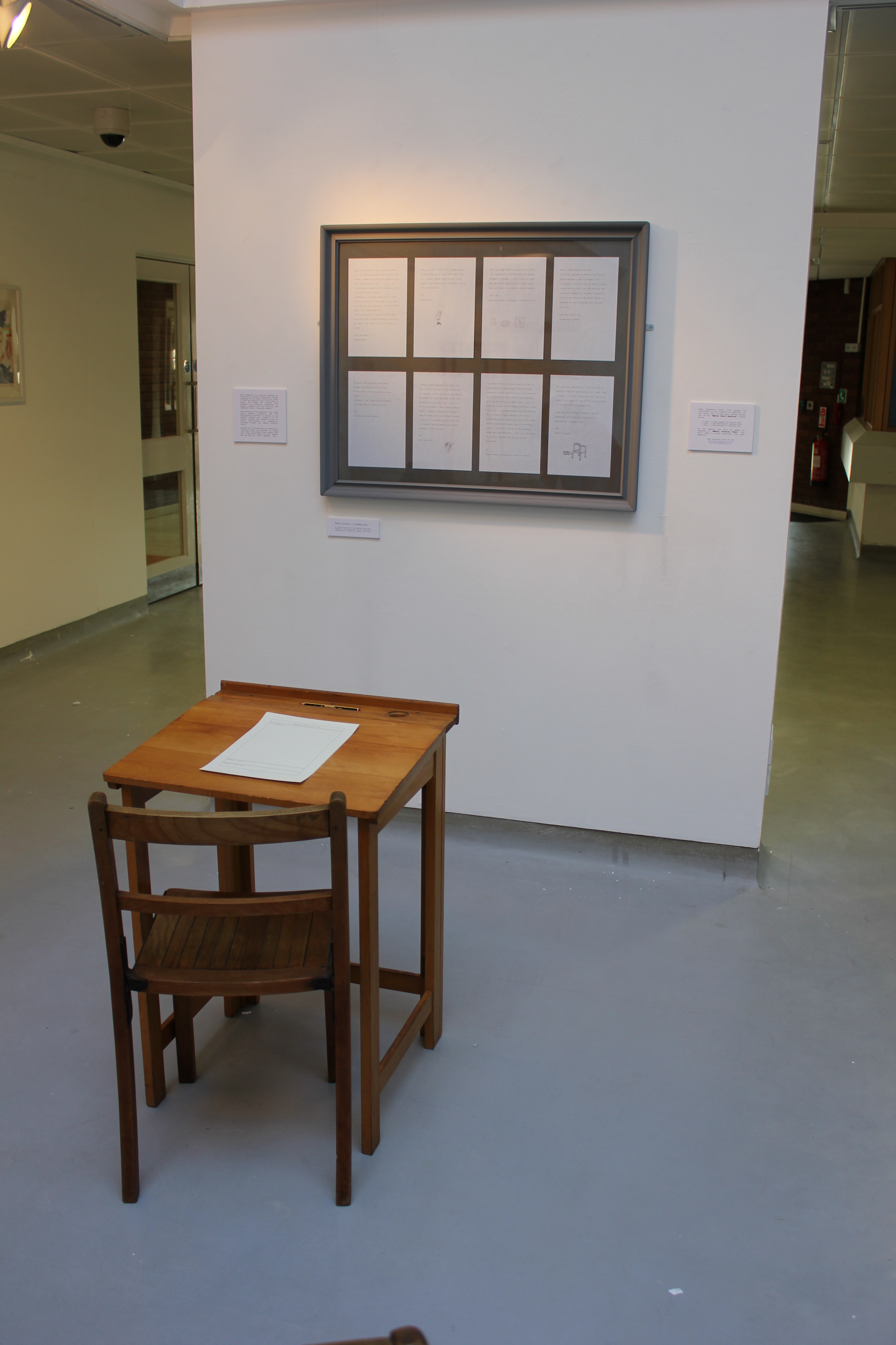 Group exhibition featuring artists from the MA art courses at the University of Central Lancashire. Andy Greenacre’s exhibition displayed memory donation forms collected during his previous exhibition at Ipswich Art School Gallery and included a school desk to allow visitors the opportunity to contribute their own memory donations to the project for use in his future artwork and exhibitions. Some of these memory dontations have influenced artworks in Andy Greenacre’s current exhibition and book ‘Retrieval Cue’.